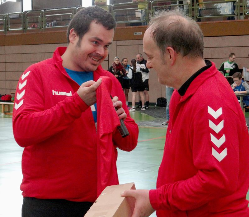 Das Turnier in Lauchringen stand für uns unter einem ganz besonderen Stern. Bernd hatte den Athleten vom Oberrhein versprochen einen Gegenbesuch zu machen. Sind doch die Athleten von Special Olympic Hochrhein schon Gäste bei unserem Radebeule Turnier gewesen. Versprochen ist versprochen! Also flugs ein Team in den Herbstferien aktivieren. Interessierte waren schnell gefunden. Wir hatten auch nur 9 Plätze für die Reise. Mit Renè, Madelaine, Yvonne, Patrick, Peter, Uwe, Jörg, Andreas(I) und Delegationsleiter Bernd war unser Reisegefährt voll besetzt. Eine glückliche Fügung ergab sich noch durch unseren SOD Koordinator Ronny Weber. Er wollte in seiner Funktion dem Turnier beiwohnen. Als aktiver Mensch verknüpfte er seinen Pflichtteil mit der Lust am aktiven Handballspiel. Er, Andreas(II) und Marcel erweiterten unser Team auf 11 Spieler!