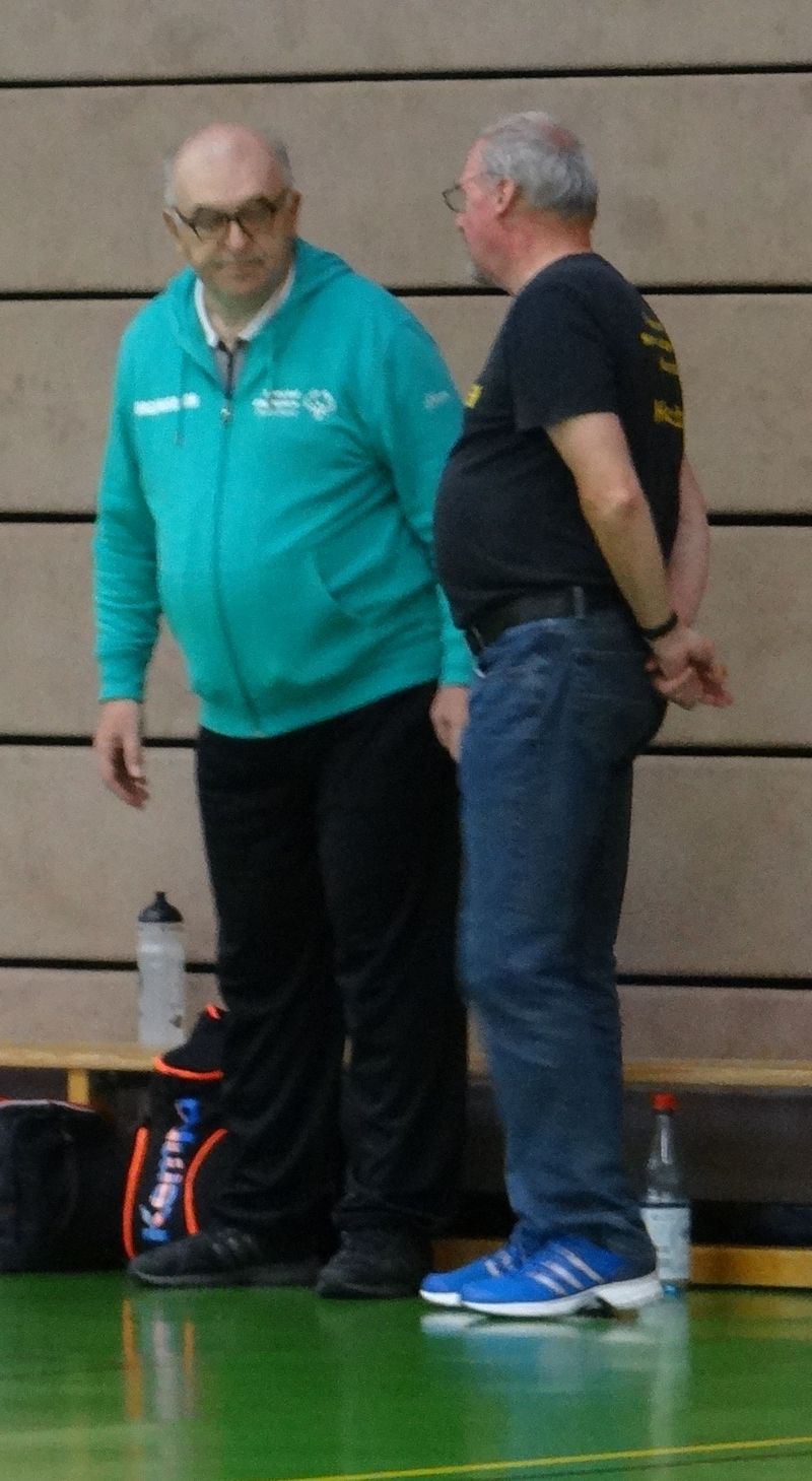 Am fühen Morgen sind auch schon die erten Fans da. SOD Handball Vertreter Hubert Berger ist auch vor Ort (Hier mit Volker Ehmig)