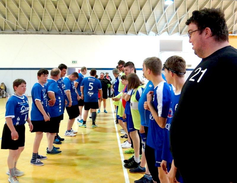 Die Handballkarawane der SpecialLiga Sachsen trifft sich zum Finale in der Radebeuler Elbhalle. Die Erwartungen sind groß, findet doch heute die Siegerehrung statt. Für manchen Athleten ist das Neuland dieser Liga gewöhnungsbedürftig. Gab es bisher nach Einzelturnieren immer Urkunden und Medaillen, mussten sie 4 Spieltage auf die begehrten Auszeichnungen warten.Aber erst mal geht es an die letzten Pflichtspiele.