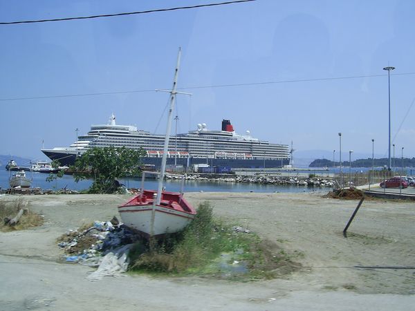 Auf der Heimfahrt endeckten wir die Queen Elizabeth II, deren Passagiere auf Korfu eine Stippvisite machten.