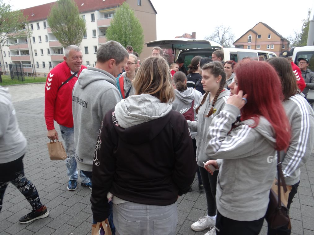 An der Elbhalle trifft noch unser Radebeuler "Lübeck-Team", welches ursprünglich eingeladen wurde, ein. Gemeinsam fährt die Autokolonne nach Großröhrsdorf zu den Rödertalbienen.