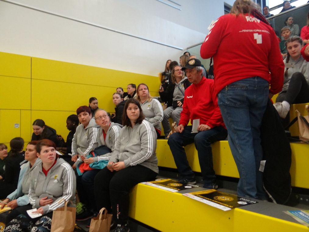 Das spannende Spiel der 2. Bundesliga fesselte uns. Da wurde dynamischer Handball vom Feinsten zelebriert. Zum Schluß behielten die Rödertalbienen, als Tabellenvierter, gegen den Tabellensechsen TuS Lintfort mit 36:30 die Oberhand. Diese "Handballlehrstunde" wurde noch mit einem gemeinsamen Foto abgeschlossen. Es war für alle ein tolles Erlebnis. Vielleicht träumte mancher in der Nacht davon.